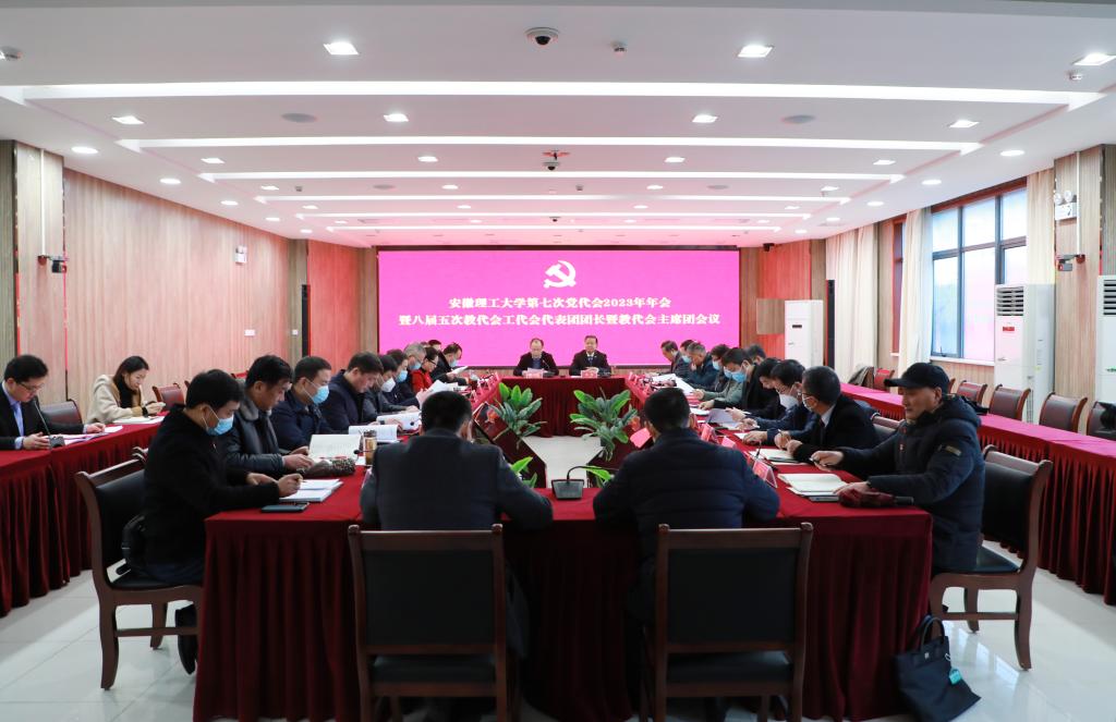2月9日上午,校第七次党代会2023年年会代表团团长会议暨八届五次教代会主席团第一次会议在舜耕苑二楼会议室召开。校党委书记郭永存主持会议。校党委副书记、校长袁亮,党委副书记、常务副校长余玉刚出席会议。